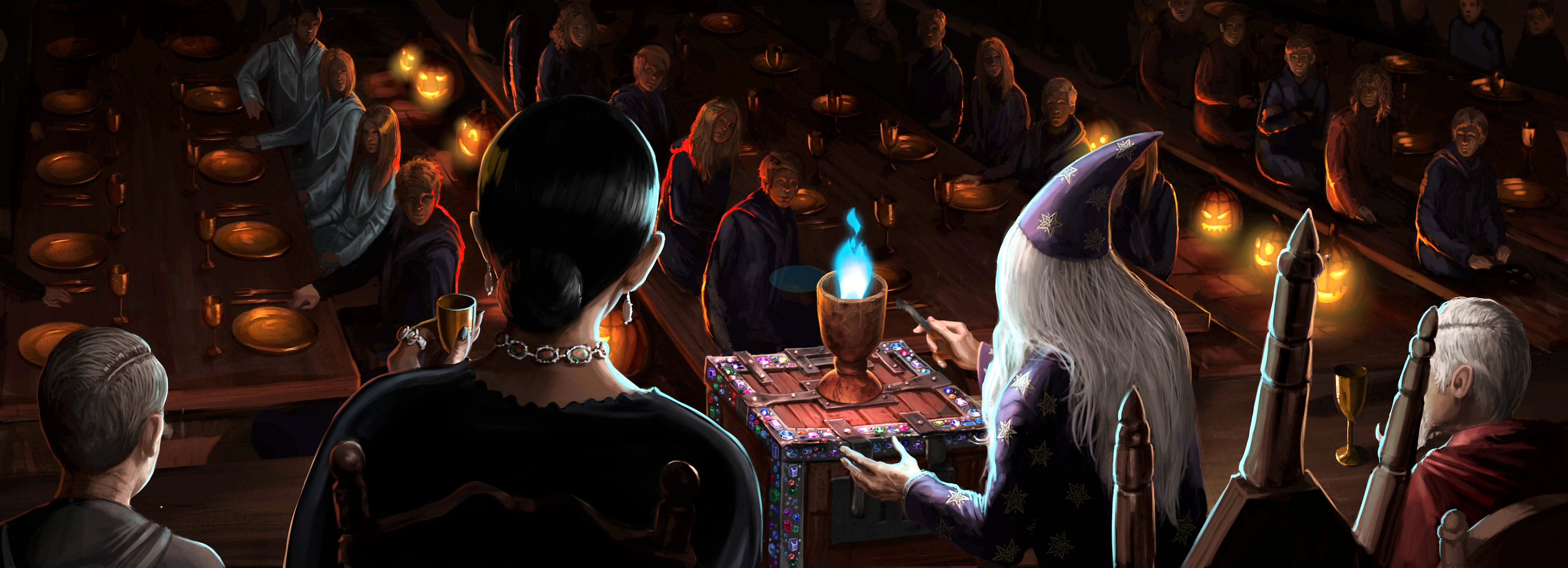 - Dress robes: Harry wore dress robes to the Yule Ball for the 1994 Triwizard Tournament, they were bottle green that matched his eyes. He also wore dress robes to Bill and Fleur's wedding in 1997. He also wore a set of dress robes to Slughorn's Christmas Party in 1996.